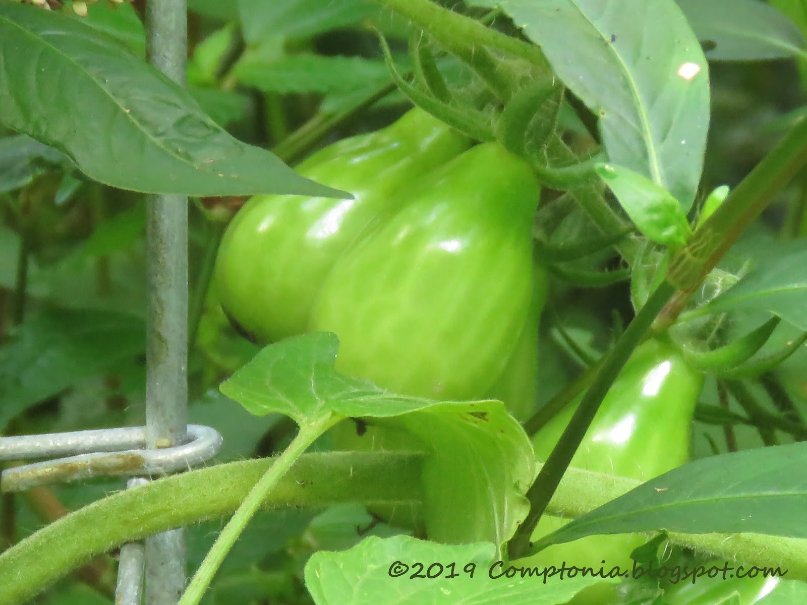 Right now there are several very large green tomatoes and a few gradually ripening tomatoes on the plants. The weather will determine if I’ll be freezing any "extra" ripe tomatoes (if so, I will probably peel them and freeze them whole) or if I’ll be hastily harvesting lots of green tomatoes just before a hard frost. I don't really have a place to store green tomatoes for ripening, although I've had fairly good results doing that in the past. But I have another idea.