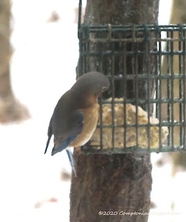 This is only the second time I have seen a bluebird on my property, and it was such a gift to look out at just the right moment to see this pair. I'm sorry the pictures are a bit murky; it was sleeting lightly.